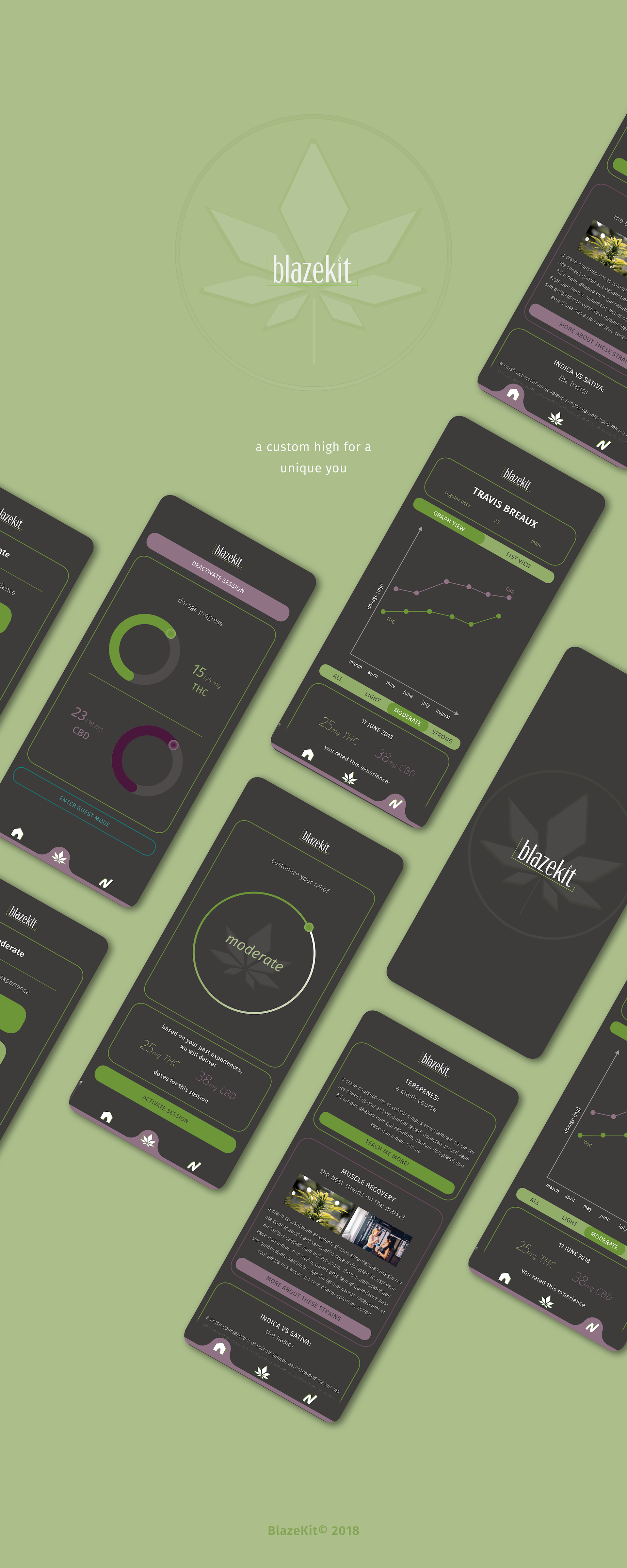 An early partner of Styx, the Blazekit vaporizer concept integrates with iOS and Android platforms to offer users full control over their marijuana experience. App design demonstrates the ability of users to report their symptoms, adjust the strength and balance of their terepenes, and tailor the herb to specific medicinal needs.